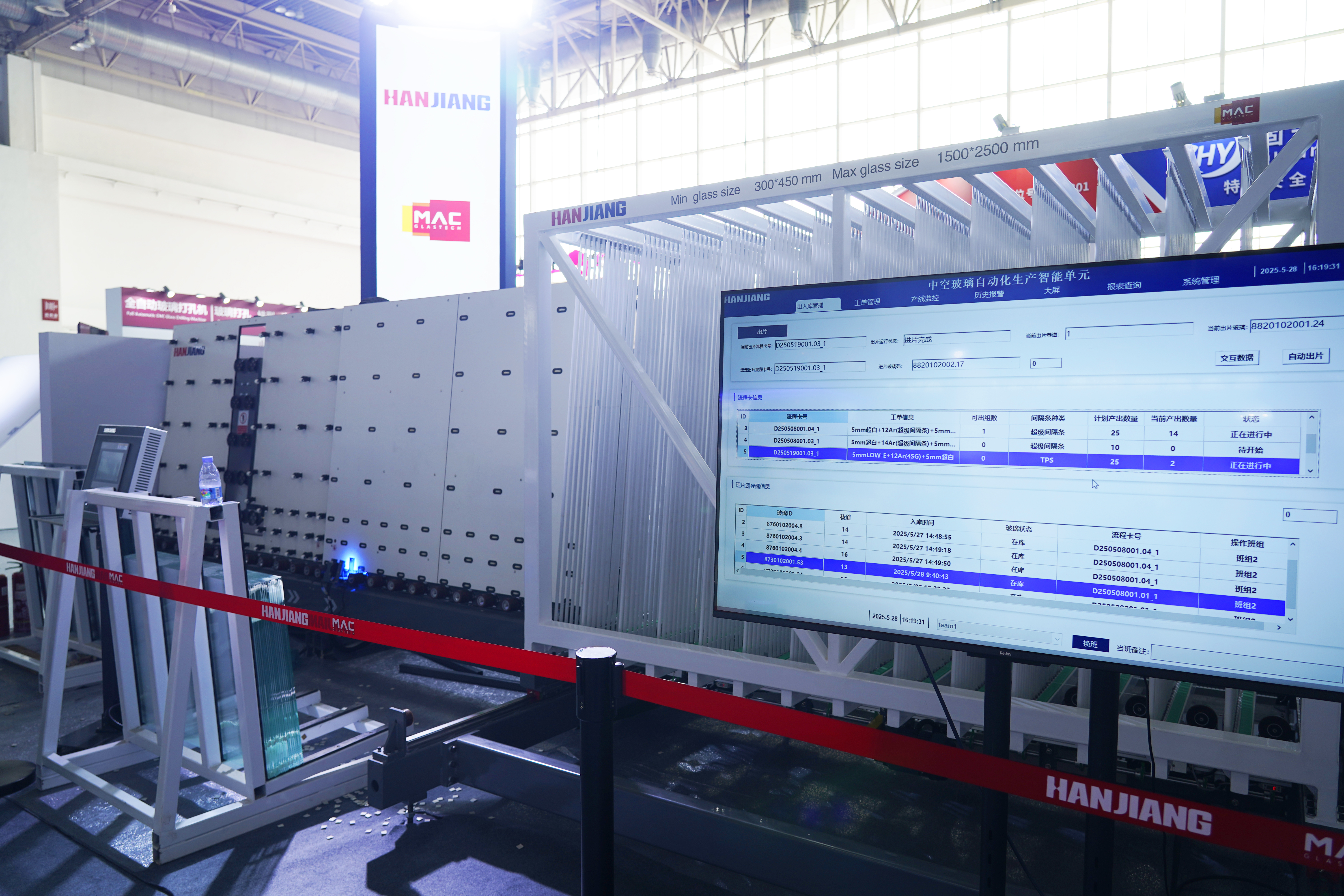 As automation continues to mature in the glass deep-processing industry, a key question emerges: how can manufacturers adopt a minimal-labor model while truly achieving cost reduction, efficiency gains, and quality control in IG production units? This has been the core focus of Hanjiang’s research over the past three years. At the 2025 China Glass Expo, Hanjiang successfully showcased a fully integrated production chain—from ERP order placement to MES work scheduling to intelligent IGU manufacturing cells—marking a significant milestone in the realization of smart insulating glass production.